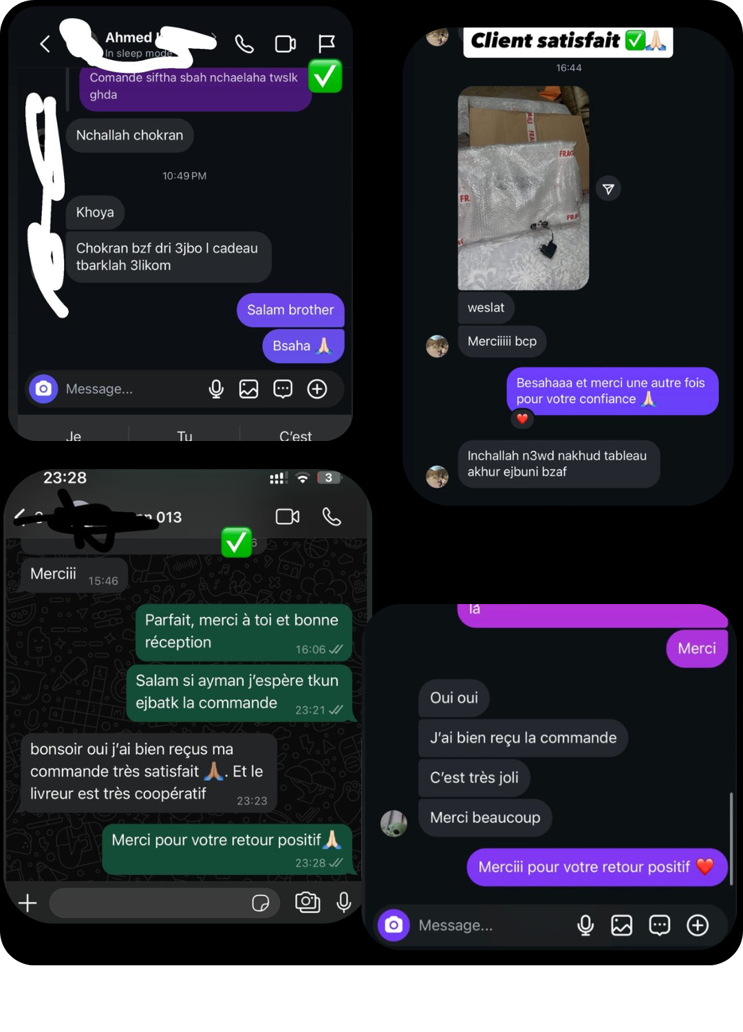 Chez eclipsed212, chaque tableau lumineux est pensé pour émerveiller nos clients. Nous recevons chaque jour des retours positifs de personnes qui ont transformé leur salon, chambre ou bureau grâce à nos créations. Notre priorité est de vous offrir une expérience d’achat simple, rapide et sans surprise. Si nos clients nous font confiance, c’est parce qu’ils savent qu’ils reçoivent toujours un produit de qualité qui dépasse leurs attentes.